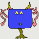 Un fond coloré bleu roi, avec des icones et barres d’outils jaune vif.